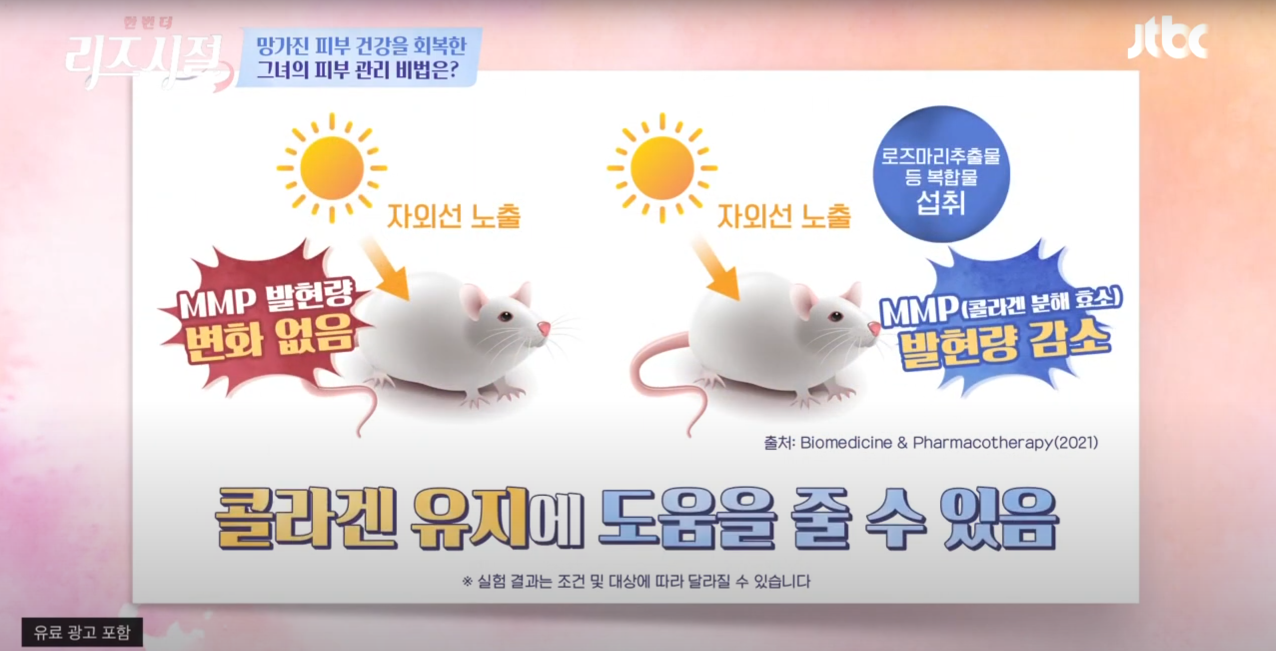 카르로스 산 성분 → MMP 효소 활성화 억제 및 감소→ 피부 노화 방지 및 손상된 피부 회복에 도움