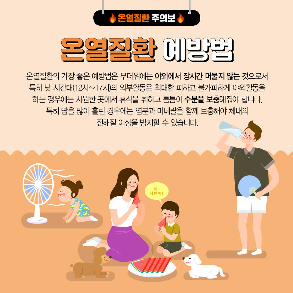 - 에어컨·선풍기·냉찜질 등으로 체온 유지
