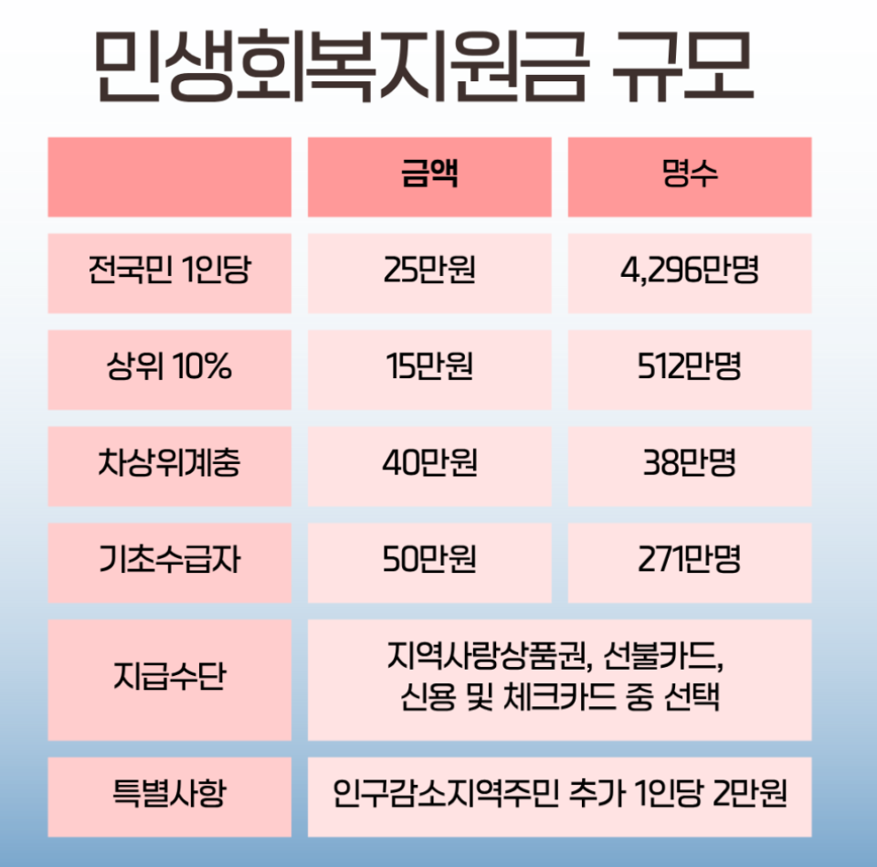 대상 : 전국민 1인당 15~ 50만원 (인구감소지역 추가 2만원)